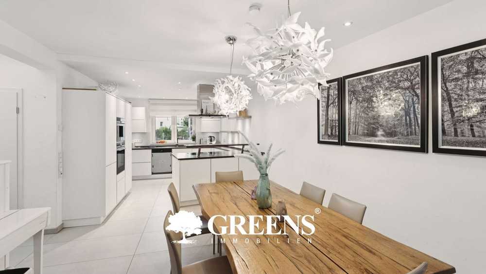 Folgen Sie dem Eingangsbereich weiter, eröffnet sich Ihnen auf der linken Seite die offene Küche mit hellen Glasfronten und edler Marmor-Arbeitsplatte, die zum gemeinsamen Kochen einlädt. Ein direkter Zugang zum Vorrats- und Hauswirtschaftsraum mit hochwertigen Einbauschränken und Anschlüssen für Waschmaschine und Trockner sorgt für einen bequemen Alltag.