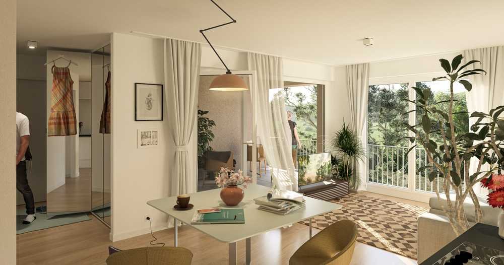Beim Betreten der Wohnung gelangen Sie zunächst in den Flur, der Sie zu verschiedenen Räumen führt. Links erwartet Sie das gemütliche Schlafzimmer, das durch eine angrenzende Ankleide mit viel Stauraum für Kleidung, Accessoires und persönliche Schätze begeistert – ein Ort der Ruhe und Ordnung. Geradeaus gelangen Sie in den großzügigen Wohn- und Essbereich mit offener Küche, der durch seine helle und freundliche Atmosphäre zum Verweilen und Entspannen einlädt. Vom Wohnbereich aus erreichen Sie das lichtdurchflutete Badezimmer mit moderner Ausstattung, das Komfort und Stil perfekt vereint. Direkt vom Wohnzimmer aus gelangen Sie auf die bezaubernde Loggia, die viel Platz für gemütliche Sitzgelegenheiten oder einen Esstisch im Freien bietet. Hier können Sie wundervolle Stunden im Freien genießen und den Alltag hinter sich lassen, während Ihr Blick über den Neckar ins Grüne schweift.