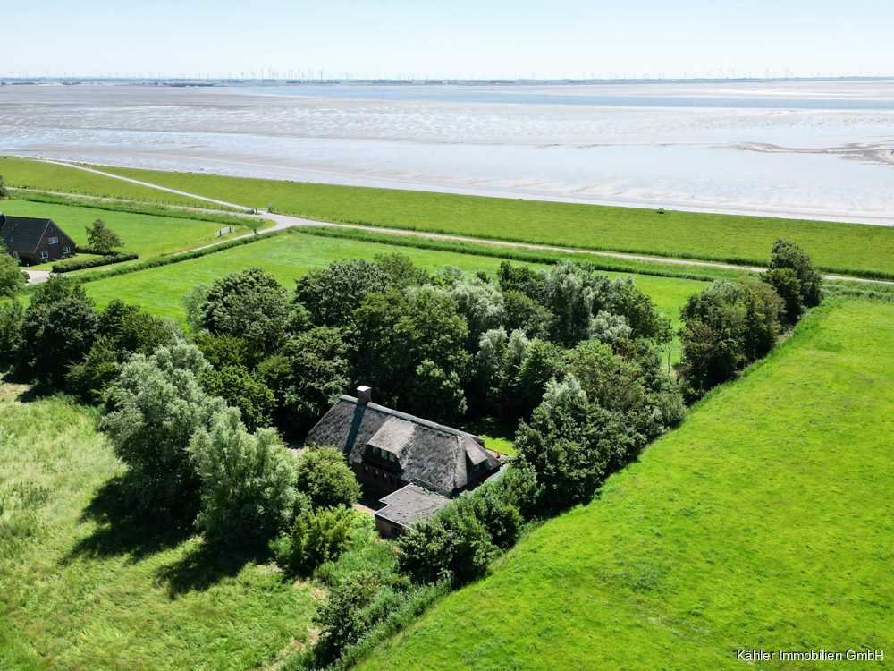 Historisches Reetdachhaus am Deich in idyllischer Lage, nur wenige Minuten von Sankt Peter-Ording