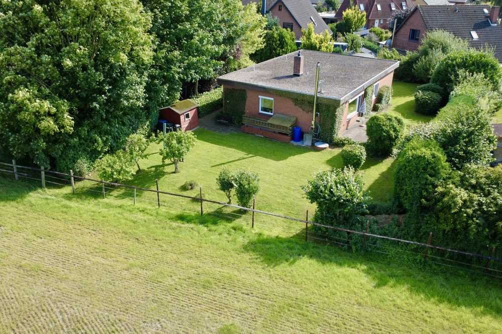 Umgeben von viel Grün, bietet dieses Haus eine seltene Gelegenheit, Wohnen auf einer Ebene mit Komfort und naturnahe Lage zu verbinden. Hier genießen Sie Platz und Privatsphäre. Von außen benötigt das Objekt noch etwas Pflege und ein paar Sanierungsarbeiten.