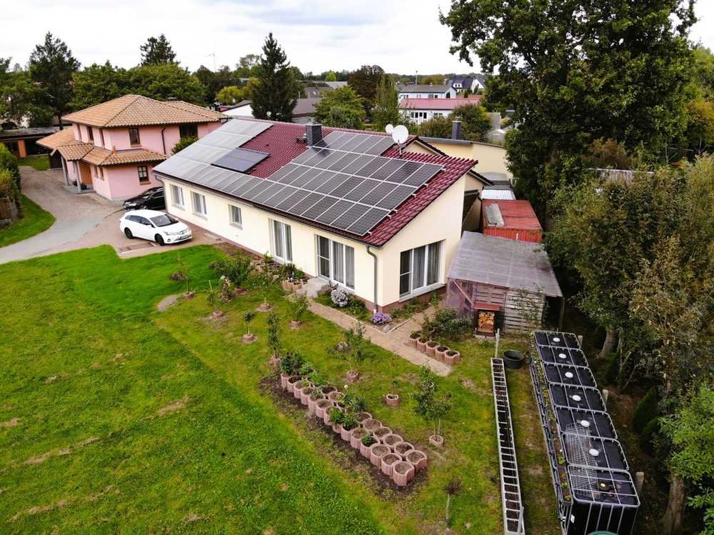 Das Haus im Bungalowstil bietet Ihnen ca. 184 m² Wohnfläche, verteilt auf 4 Schlafzimmer, 2 Bäder, Wohn- und Essbereich mit integrierter Küche, Wintergarten, Diele und Hauswirtschaftsraum.