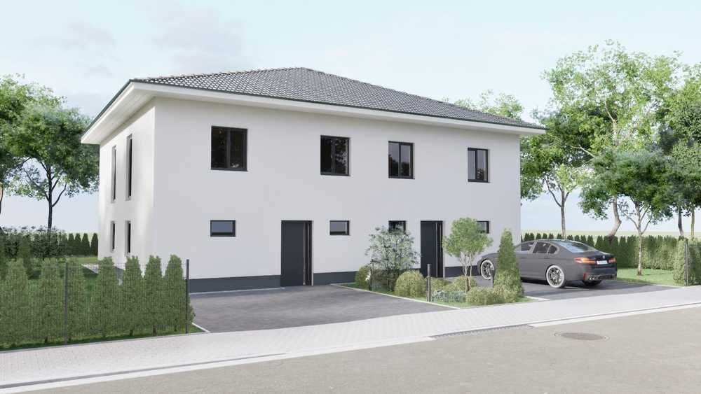 Moderne Doppelhauhälfte in Stadtvillenform mit 3 Schlafräumen und zwei Vollgeschossen, inklusive Bodenplatte.