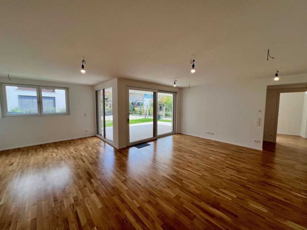 Diese hochwertige 3-Zimmer-Neubauwohnung im Erdgeschoss vereint modernen Wohnkomfort mit zeitloser Eleganz und ökologischer Nachhaltigkeit. Auf rund 106 m² Wohnfläche finden Sie hier nicht nur ein großzügiges Raumkonzept, sondern auch exklusivste Ausstattungsmerkmale, die keine Wünsche offenlassen. Die Wohnung überzeugt durch ihre durchdachte Raumaufteilung und bietet zusätzlich einen privaten Garten, der Ihnen ein hohes Maß an Lebensqualität und Rückzugsort inmitten der Natur ermöglicht. Bereits beim Betreten der Wohnung werden Sie von einer großzügigen Diele empfangen, die einen einladenden Übergang in den lichtdurchfluteten Wohn- und Essbereich und den Zimmern schafft. Die offene Raumgestaltung in Verbindung mit raumhohen Fenstern sorgt für eine freundliche und luftige Atmosphäre, die den gesamten Raum mit natürlichem Licht erfüllt. Die direkte Anbindung an die Terrasse und den angrenzenden Garten erweitert den Wohnbereich und bringt das Leben ins Freie. Hier können Sie entspannen, den Tag ausklingen lassen oder in aller Ruhe Ihre Zeit genießen – der private Garten wird zum Herzstück der Wohnung. Das moderne Badezimmer überzeugt nicht nur durch hochwertige Sanitärobjekte, sondern auch durch seine elegante Gestaltung. Die bodentiefe Dusche, das Fenster, sowie der stilvolle Handtuchheizkörper ergänzen sich perfekt und sorgen für ein rundum angenehmes Nutzungserlebnis. Elegante Bodenfliesen harmonieren mit den modernen Elementen und schaffen eine luxuriöse Atmosphäre. Ein zusätzliches Gäste-WC rundet das Angebot ab und bietet Gästen eine eigene Privatsphäre. Alle Wohn- und Schlafräume sind mit Parkett ausgestattet, das dem gesamten Raum eine warme und behagliche Atmosphäre verleiht. Die offene Küche fügt sich perfekt in das Gesamtkonzept der Wohnung ein. Ein praktischer Abstellraum sorgt für zusätzlichen Stauraum und Ordnung. Zur Wohnung gehört ein Tiefgaragenplatz, der durch eine Wall-Box für die Aufladung von Elektrofahrzeugen ausgestattet ist – eine praktische Lösung für umweltbewusste Mobilität. Der Tiefgaragenplatz kostet zusätzlich für 35.000 €. Rufen Sie an und vereinbaren Sie einen Besichtigungstermin.