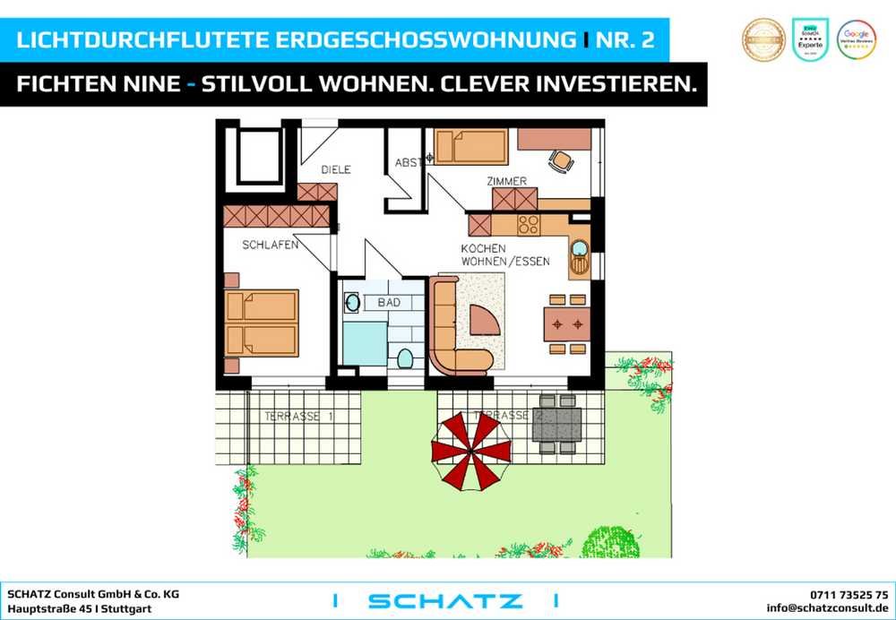 Lichtdurchflutete Erdgeschosswohnung mit 72m² Garten I Nr. 2