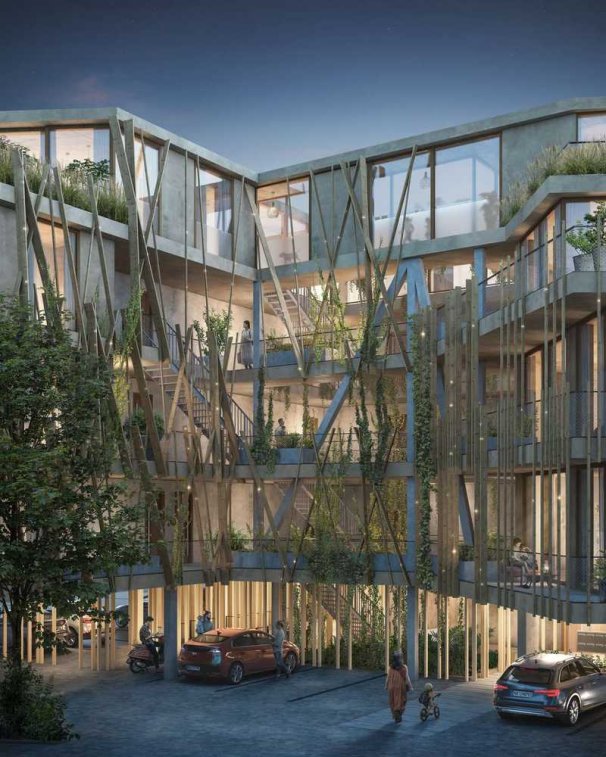 Das von der Natur inspirierte Konzept spiegelt sich sowohl in der Wahl der Materialien als auch in der Innenarchitektur wider. Alle Fenster bestehen aus warmem Holz. Kombiniert mit einem angenehmen Holzboden sowie betonsichtigen Decken, die für eine klare, ruhige und zeitlose Atmosphäre sorgen. Auch die Bäder folgen der ganzheitlichen Leichtigkeit und beflügeln die Entspannung mit schwebend montierten Elementen. Der exzellente Schallschutz nach außen wie innerhalb des Hauses lässt jede Wohnung zum eigenen Ruhepol werden. Für das Sicherheitsgefühl sorgen ein exklusiver Zugang sowie einbruchshemmende Türen.