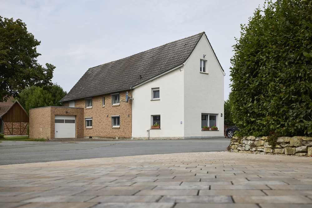 Dieses sanierte Zweifamilienhaus liegt am Ende einer ruhigen Sackgasse in einem beliebten Ortsteil von Erwitte. Dank der ruhigen, Lage genießen Kinder ein Höchstmaß an Sicherheit und können vor der Haustür spielen und toben. Im Jahre 2002 wurde dieses Haus durch einen Anbau zu einem Zweifamilienhaus umgebaut. Mit einem exzellenten Gespür für den aktuellen Zeitgeist ist über die Jahre der Sanierung ein Wohnhaus entstanden, was moderner ist, als das Baujahr vermuten lässt. Die beiden Wohneinheiten sind von einander getrennt und verfügen über einen separaten Hauseingang. Die Versorgungsleitung sind ebenfalls getrennt, sodass eine Verbrauchs-abrechnung problemlos möglich ist. Die erste Wohnung verfügt über eine Wohnfläche von ca. 89 m² aufgeteilt auf zwei Etagen. Die geschickte Aufteilung der Räume schafft ein gemütliches Wohn-ambiente, trotz übersichtlicher Wohnfläche. Der Eingangsbereich ist mit hochwertigen Fliesen ausgestattet und ebnet den Weg zum Wohnbereich. Neben den neuen Doppelverglasten Fenstern ist hier ein hochwertiger Holzboden verlegt worden, der sich auch in anderen Räumen wiederfindet. Die gepflegte Einbauküche mit einer Sitzgelegenheit komplettiert das Raumangebot im Erdgeschoss. Im Obergeschoss befinden sich zwei großzügige Schlafzimmer und eine kompakte Ankleide. Das Badezimmer befindet sich in unmittelbarer Nähe zu den Schlafzimmern und schafft somit kurze Wege. Eine großzügige bodentiefe Dusche und ein durchgängiger Fliesenspiegel unterstreichen die modernen und hochwertigen Charakter dieses Hauses.