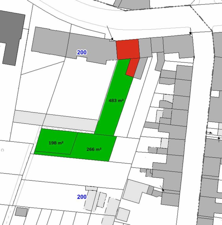 Hinweis zu den beiden rückwärtigen Grundstücken:
