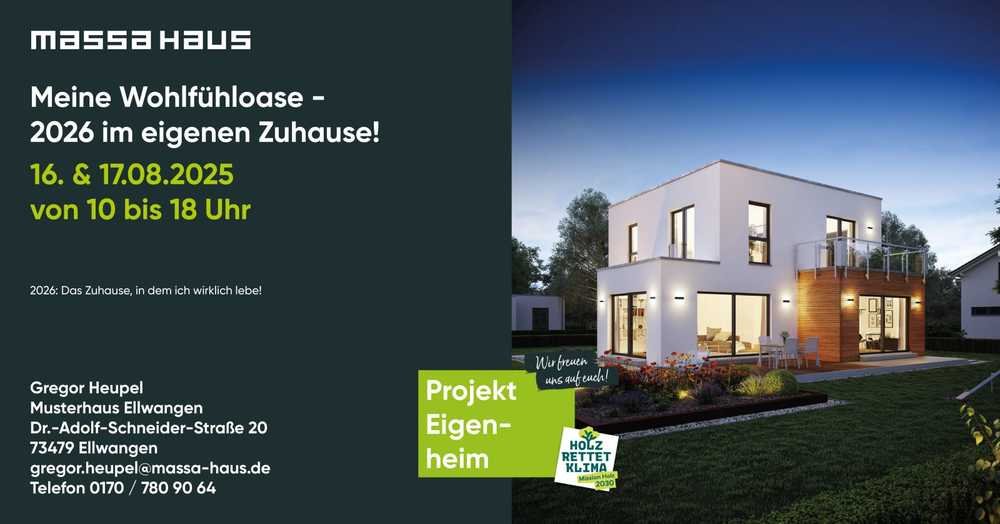 Ein eigenes Haus zu bauen, ist eine ganz besondere Herausforderung: ein echter Lebenstraum eben! Bei der Verwirklichung dieses Traumes stehen wir von massahaus als starker Partner an Ihrer Seite. Und das mit erstklassiger Qualität, energieeffizienter und zukunftsweisender Bauweise und einem Preis-Leistungsverhältnis, das seinesgleichen sucht. Dieses Angebot wurde so konzipiert, dass Sie es flexibel und individuell kosteneinsparend in Eigenleistung ausbauen können. Oder Sie organisieren den Ausbau günstig selbst oder mit einem Fachmann Ihrer Wahl und gestalten Ihr Traumhaus ganz nach Ihren Bedürfnissen! Leben Sie Ihren Individualismus! Bestimmen Sie über Auswahl und Preis. Egal wie Sie sich entscheiden, wir begleiten Sie als Partner und schaffen so gemeinsam bleibende Werte - ein Leben lang. Kostenreduzierung durch zusätzliche Eigenleistungen möglich!