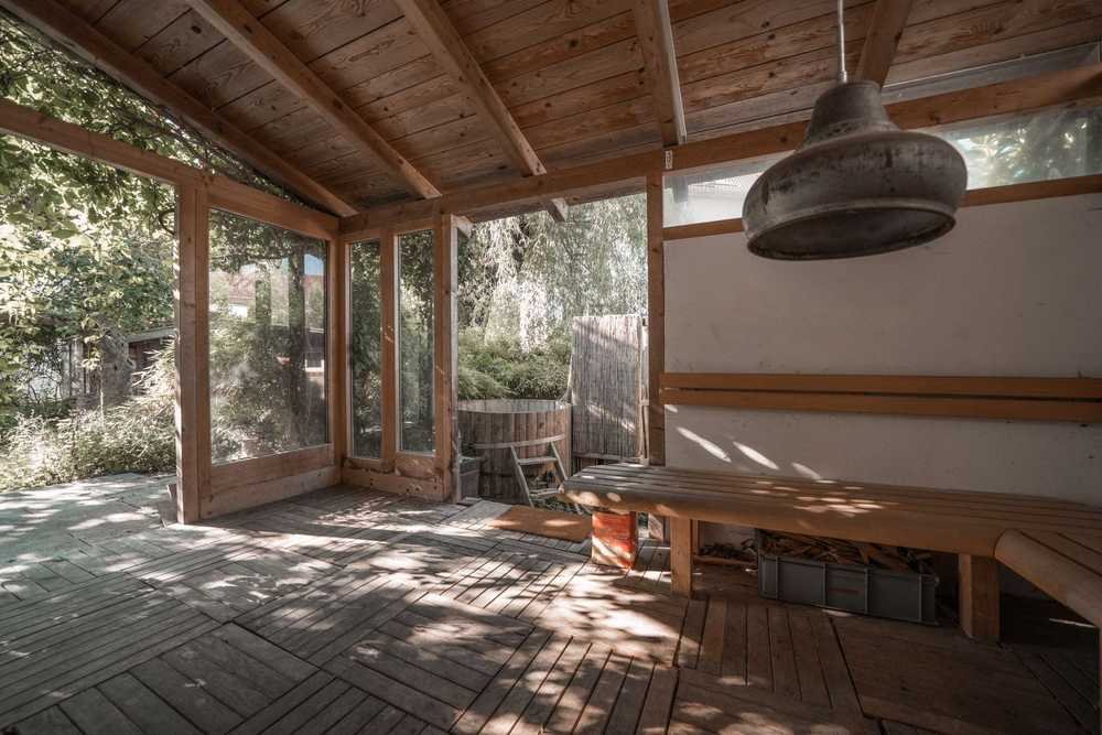 Das rund 300 m² große Grundstück verfügt über eine großzügige Gartenfläche von ca. 200 m², die nach eigenen Vorstellungen angelegt werden kann. Ein offener Wintergarten, eine kleine Sauna sowie ein Außenstellplatz ergänzen das Objekt.