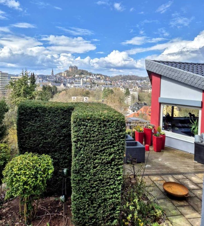 Die südwestliche Ausrichtung garantiert ausreichende Sonnenstunden auf der großzügigen Terrasse und einen Blick über ganz Marburg.