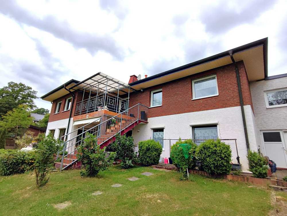 Der Garten ist pflegeleicht mit Sträuchern, Bäumen und einem Teich gestaltet. Ein kleines Gartenhaus bietet zusätzlichen Stauraum. Zwei Garagen, davon eine Fertiggarage, sowie drei Außenstellplätze runden das Angebot ideal ab.