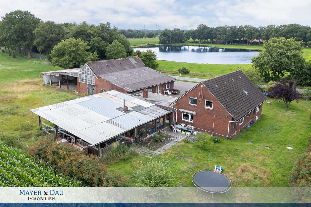 In idyllischer Lage im Außenbereich der Gemeinde Apen, im Landkreis Westerstede, befindet sich dieses weitläufige Anwesen bestehend aus zwei separaten Wohnhäusern mit insgesamt vier Wohneinheiten. Das im Jahr 1983 errichtete Objekt liegt auf einem großzügigen Grundstück von ca. 3.552 m² und bietet mit einer Gesamtwohnfläche von ca. 331 m² sowie insgesamt 11 Zimmern vielfältige Nutzungsmöglichkeiten laut Baugenehmigung – ideal für Mehrgenerationenwohnen, Wohnen und Arbeiten unter einem Dach oder zur (Teil-)Vermietung.