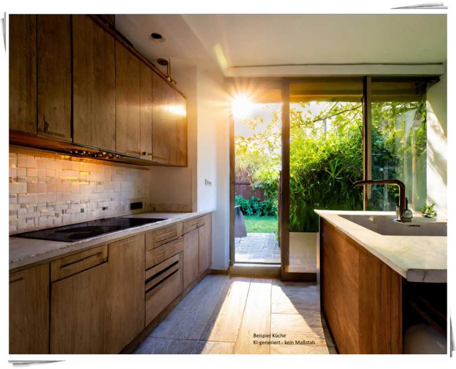 Von der Küche aus gelangen Sie in den schönen Nord-Ost-Garten mit Terrasse, in dem Sie den Sonnenaufgang und das Frühstück, oder an heißen Tagen auch am Nachmittag ein wenig Schatten geniessen können. Dieser Teil des Gartens ist komplett abgeschlossen und bietet den von vielen Eltern ersehnten Schutz Ihrer Kleinsten vor übermäßiger Sonneneinstrahlung am Nachmittag und der Angst, sie könnten mal eben kurz unbemerkt auf Wanderschaft gehen.
