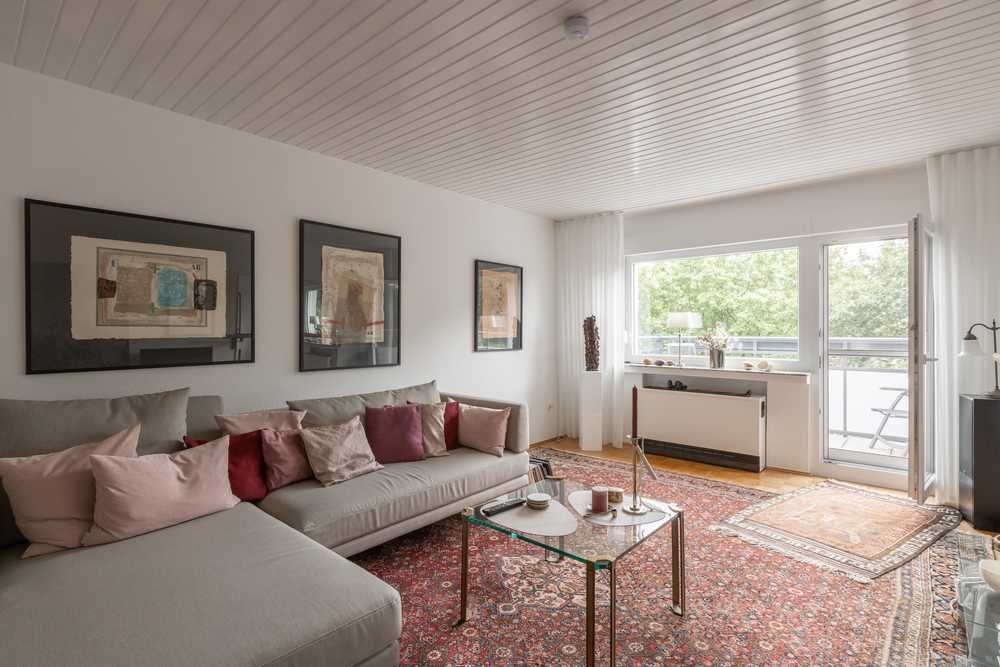 Der Grundriss überzeugt durch eine durchdachte Raumaufteilung. Durch den großzügigen und hellen Wohnbereich mit Parkettboden gelangen Sie auf den nach Süden ausgerichteten Balkon. Von hier aus können Sie mit Blick in die Baumkronen des alten Baumbestandes Sonne und Ruhe gleichermaßen genießen.