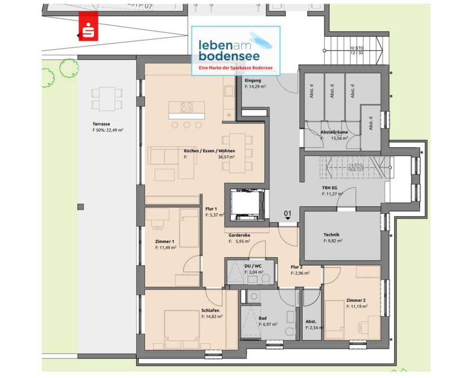 Gemeinschaftsräume für Fahrräder etc. und jeweils ein der Wohnung zugeordneter Kellerraum runden das Raumangebot ab.