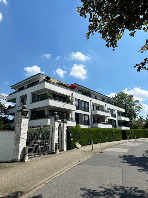 Auf vier Ebenen entstanden hier 2016 im Stil der klassischen Moderne 10 Wohnungen sowie zwei Penthouses - alle mit umlaufenden Balkonen oder Terrassen. Die bis 15 m langen, großflächigen Fensteranlagen bieten sowohl einen atemberaubende Blick in die Parkanlage als auch nach Burtscheid hinein.
