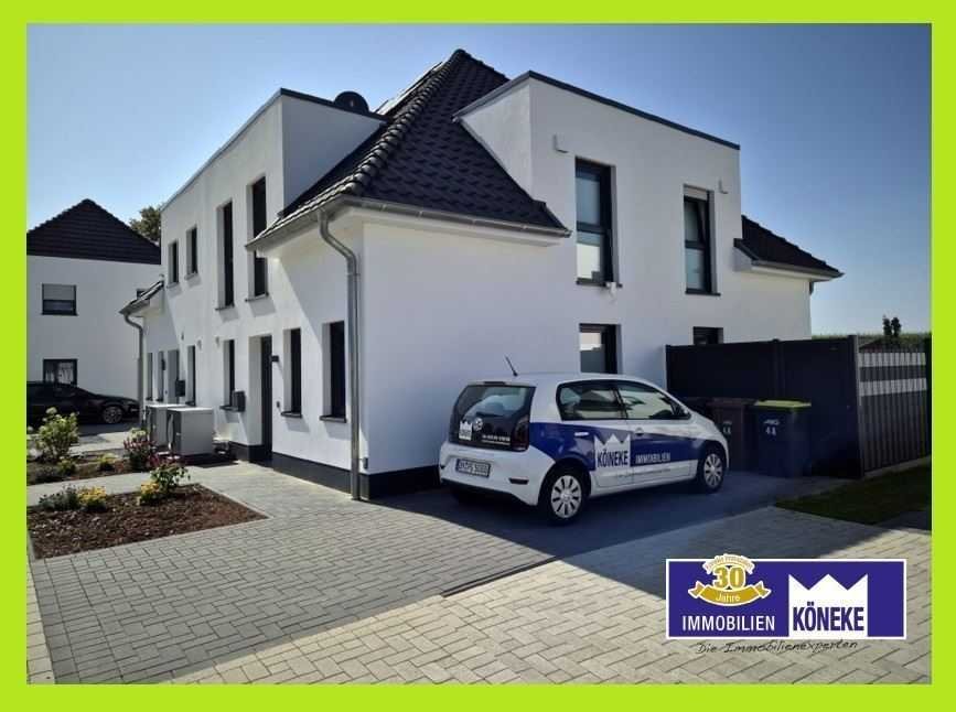 Neue Doppelhaushälfte Baujahr 2024, ca. 110 m² Wohnflächen, Ausbaureserve, in Massivbauweise mit Edelputzfassde, Walmdach mit Tonziegeleindeckung und Dachausbauten, 2 Gauben, KS-Fenster mit 3-fach-ISO-Verglasung, Terrasse, PKW-Einstellplatz, auf einem ca. 300 m² großem Grundstück.