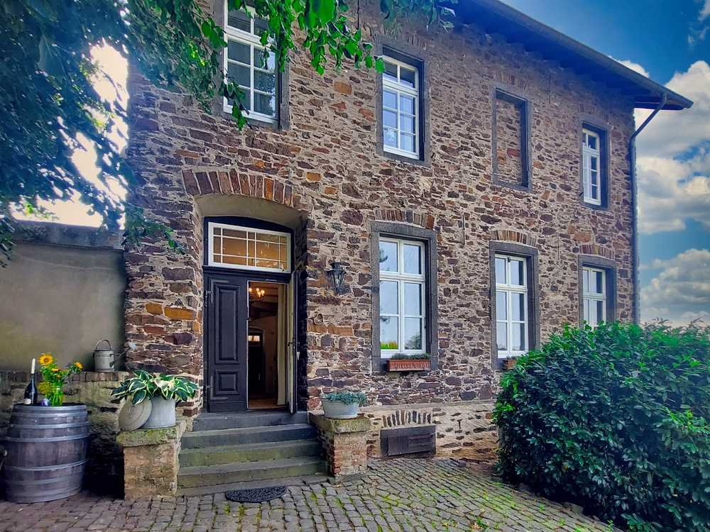 Es handelt sich um ein idylisch am Ortsrand gelegenes, freistehendes NICHT-denkmalgeschütztes Bruchsteinhaus mit 80cm dicken Außenwänden, errichtet 1890 mit Nebengebäude, großzügiger Doppelgarage, ein rosengesäumter Innenhof und einer parkähnlichen Gartenanlage, welche mit ihrem eingewachsenen und teils Jahrhunderte altem Baumbestand eine ganz besondere Aura verbreitet.