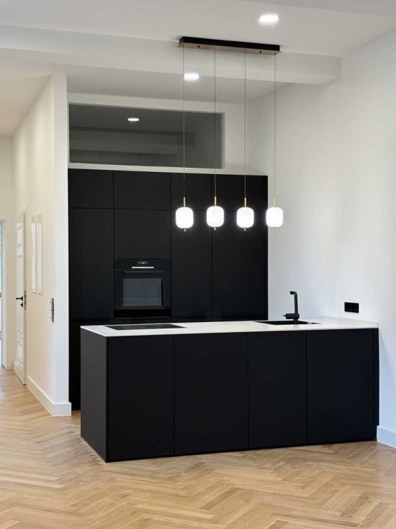 Böden in edlem Fischgrät-Eichenparkett, neu lackierte Altbautüren, dreifachverglaste Fenster und geschmackvolle Details wie schwarze Schalter und Steckdosen unterstreichen den hochwertigen Charakter dieser Immobilie.