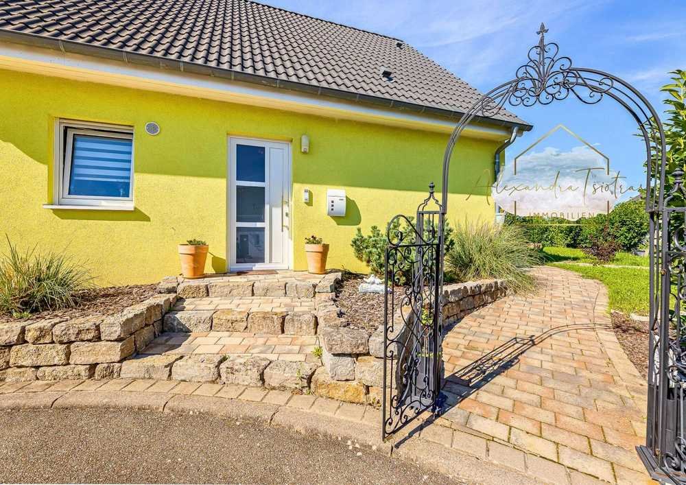 Das neuwertige und massiv gebaute Town and Country Einfamilienhaus aus dem Baujahr 2016 befindet sich in direkter Feldrandlage auf einem 466 m² großen Grundstück.
