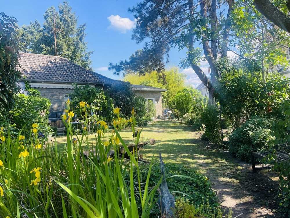 Durch die Terrassen und weiteren Sitzmöglichkeiten im Garten und vor dem Haus, lässt sich jederzeit ein Platz im Schatten oder in der Sonne finden, um die Momente auf dem 626 m² großen Grundstück in Ruhe zu genießen. Ein besonders einladender Ort dafür ist der frei gelegene Sitzplatz am Gartenteich mit rund 26.000 Litern Volumen und integrierter Outdoorküche.