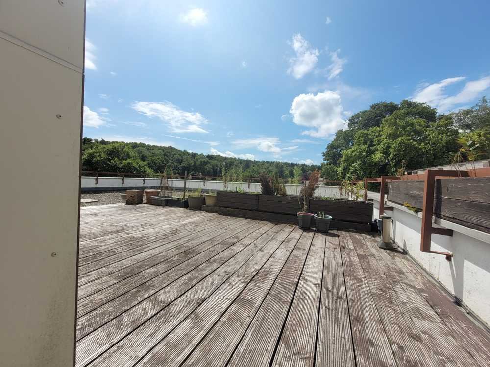 verbunden mit dem Zugang zum überdachten Balkon unterstreicht den Blick zur Waldung.
