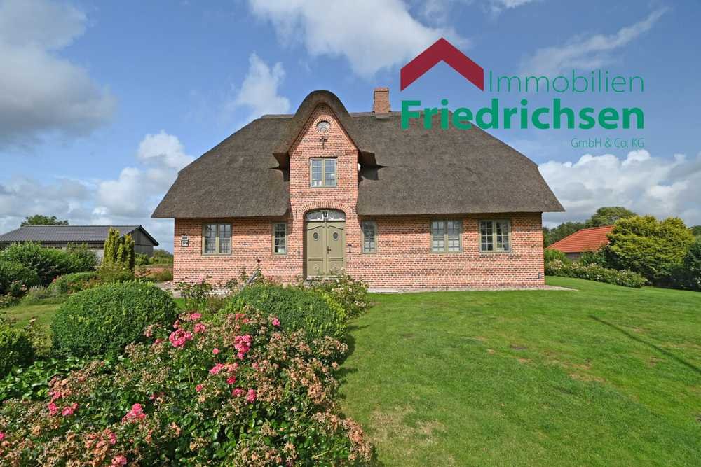 In einer der begehrtesten Wohnlagen von Risum-Lindholm, auf einer schützenden Warft und mit freiem Blick in die weite nordfriesische Koogslandschaft, befindet sich dieses einzigartige Einfamilienhaus mit traditionellem Reetdach. Die ruhige, exklusive Umgebung mit weiteren Reetdachhäusern auf großzügigen Grundstücken verleiht dem gesamten Straßenbild eine besonders harmonische und hochwertige Ausstrahlung.