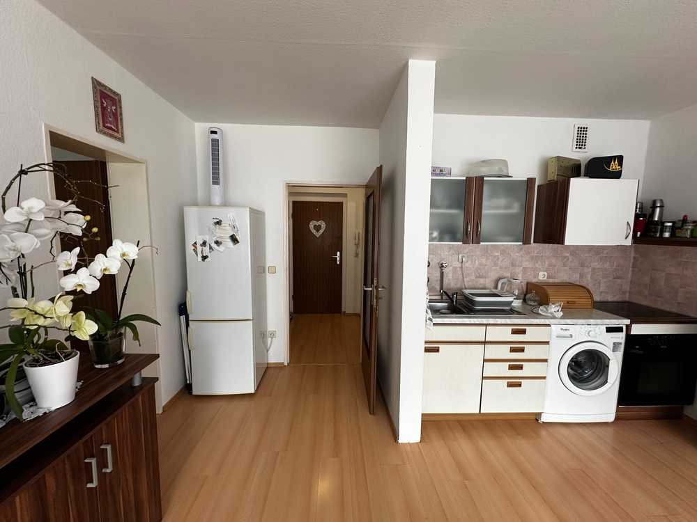 Die Wohnung empfängt Sie mit einem kleinen Flur, von dem aus alle Räume erschlossen werden. Die helle Wohnküche bildet das Herzstück der Wohnung und bietet Zugang zum Balkon, der zum Verweilen mit Blick ins Grüne einlädt. Das separate Schlafzimmer ist kompakt, aber gut geschnitten. Das Badezimmer ist gepflegt und mit einer Badewanne ausgestattet.