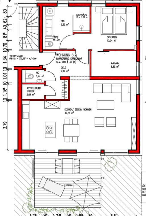 Auf ca. 93,92 m² Wohnfläche (inklusive Terrasse, zur Hälfte angerechnet) erwarten Sie helle, großzügig geschnittene Räume, die viel Platz für individuelle Wohnideen bieten.