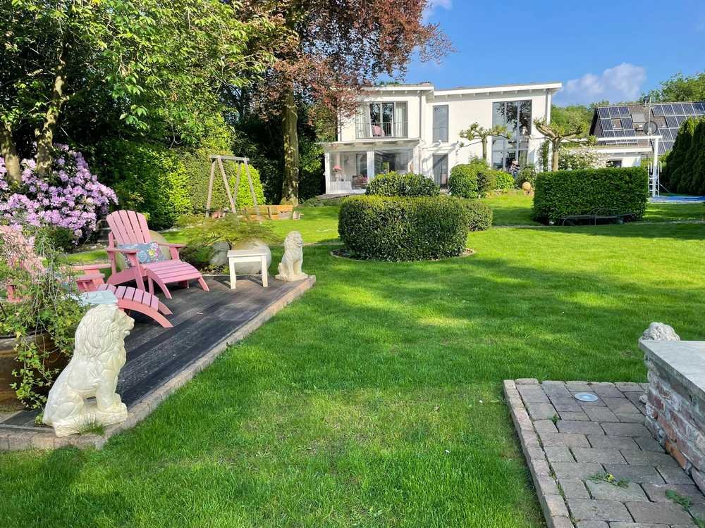 Die Villa wurde in Massivbauweise errichtet, ist voll unterkellert und hat einen nach Westen ausgerichteten, aufwändig angelegten, nicht einsehbaren Garten, mit unverbaubarem Blick (Wasserschutzgebiet) in die Natur. Das gesamte Grundstück ist über eine breite und hohe Begrünung vollständig eingefriedet und bietet viel Potential für Aus- und Umbau.
