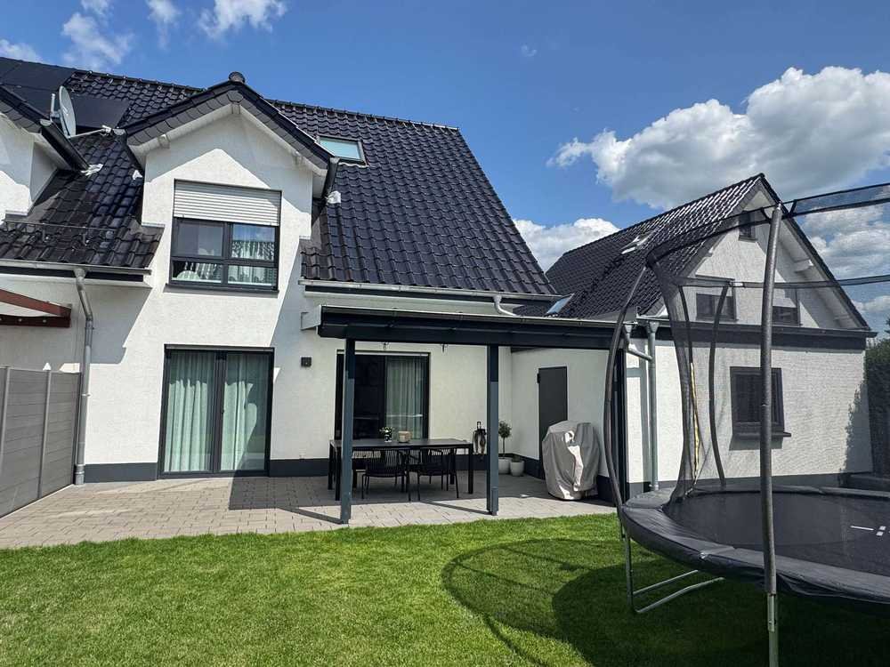 Diese moderne Doppelhaushälfte aus dem Jahr 2016 vereint stilvolles Wohnen mit familienfreundlicher Lage. Auf ca. 151 m² Wohnfläche erwarten Sie ein lichtdurchfluteter Wohn- und Essbereich mit offener Küche, drei Schlafzimmer, ein modernes Bad, Gäste-WC und ein ausgebauter Spitzboden. Der gepflegte Garten mit Sonnenterrasse bietet Platz zum Spielen und Entspannen, während Garage und Stellplatz für Komfort sorgen. Dank effizienter Luftwärmepumpe wohnen Sie energie- und kostensparend. Schulen, Kitas, Spielplätze und Einkaufsmöglichkeiten liegen in unmittelbarer Nähe – ideal für ein glückliches Familienleben.