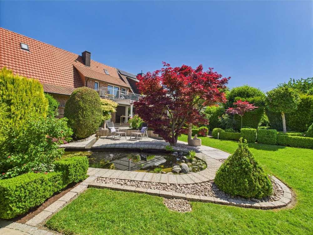 Die Immobilie ist in einem sehr gepflegten Zustand ohne akuten Sanierungsstau. Eine überdachte Südwest-Terrasse, ein liebevoll angelegter Garten mit Teich und Gartenhaus runden dieses vielseitige Wohnangebot ab. (…)
