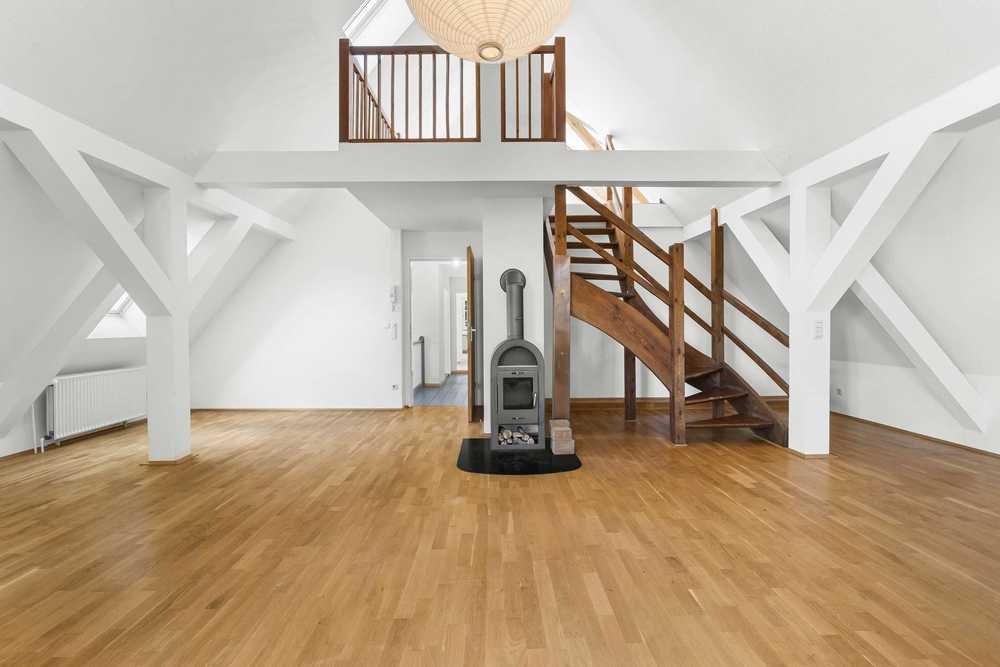 Das Raumkonzept überzeugt durch durchdachte Aufteilung: Ein großzügiger Wohn- und Essbereich mit moderner Küche im Erdgeschoss, fünf optimal geschnittene Zimmer und zwei Bäder im Obergeschoss sowie ein vollausgebauter Spitzboden, der zusätzlichen Wohn- oder Arbeitsraum schafft.