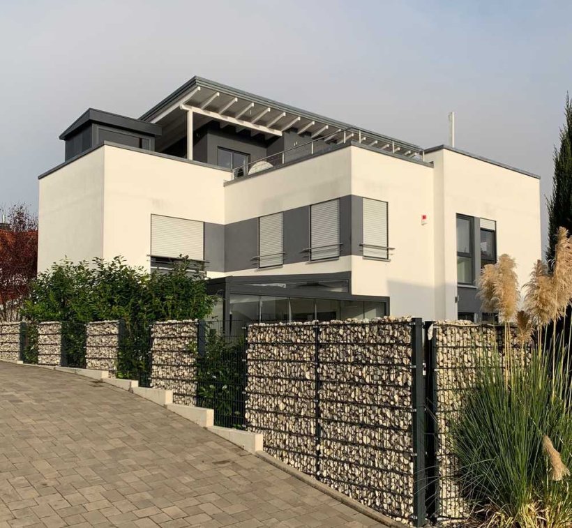 Das zweistöckige, freundliche und gepflegte Einfamilienhaus besticht durch eine gehobene Innenausstattung. Die Immobilie besteht aus acht attraktiven Zimmern und verfügt zudem auch über ein separates Gäste-WC. Das 2013 erbaute Gebäude wird per Wärmepumpe beheizt. Außerdem steht Ihnen eine Garage zur Verfügung, sodass zeitraubendes Parkplatzsuchen der Vergangenheit angehört. Besonders toll ist die großzügige Dachterrasse, die Ihnen bei schönem Wetter zu einem regelrechten Outdoor-Zimmer werden kann. Das gesamte Grundstück inklusive Haus wird für einen Preis von 1.449.000 Euro verkauft.