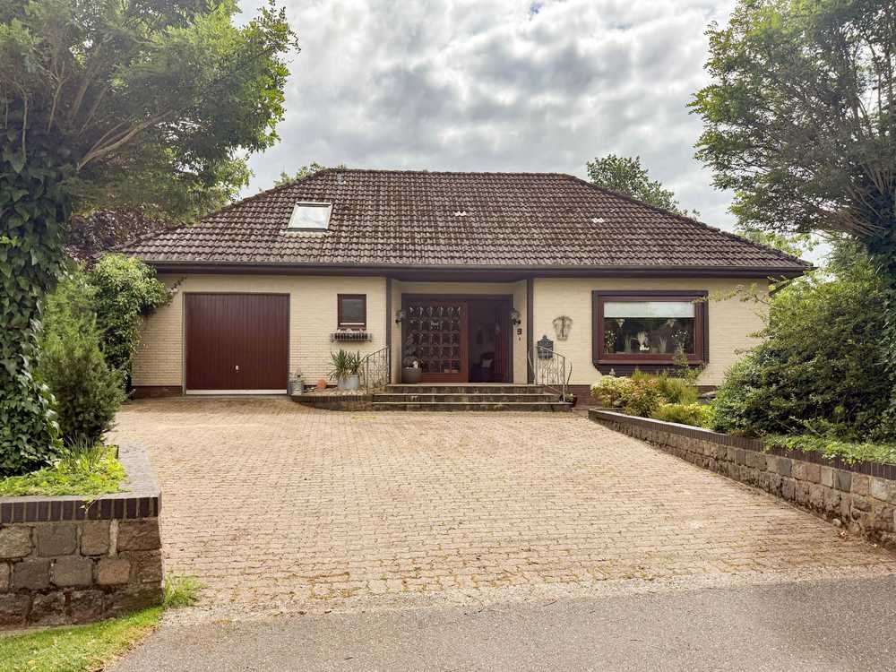 Diese Immobilie aus dem Baujahr 1975 bietet mit einer Wohnfläche von ca. 117 m² ein solides und behagliches Zuhause für Singles, Paare oder kleine Familien auf einer Ebene. Das Einfamilienhaus befindet sich auf einem großzügigen Grundstück mit einer Fläche von 1.278 m² und liegt in einer ruhigen, angenehmen Wohngegend. Die Gesamtfläche des Hauses beträgt ca. 183 m² und umfasst neben der Wohnfläche im Erdgeschoss sowie der Nutzfläche im Dachgeschoss auch einen praktischen Teilkeller mit Gäste-WC und Dusche. Dieser Bereich eignet sich hervorragend als Stauraum oder für hauswirtschaftliche Zwecke. Auch die Nutzung als Werkstatt, Lager oder Hobbyraum ist denkbar. Die Wohnräume sind funktional geschnitten, verfügen über eine gute natürliche Belichtung und lassen sich mit etwas Aufwand an Ihre individuellen Wohnbedürfnisse anpassen. Dieses Einfamilienhaus mit Bungalow-Charakter empfängt Sie in einem großzügigen Eingangsbereich und führt direkt zu einem Gäste-WCs sowie in das geräumige Wohnzimmer. Dieses bietet Zugang zur teilüberdachten Süd-West-Terrasse mit Blick in den Garten. Über das Wohnzimmer gelangen Sie in die Küche, die an einen Flur anschließt. Hier komplettieren drei Zimmer und ein Vollbad das Angebot dieser Immobilie. Außerdem gibt es einen direkten Zugang sowohl zur Garage als auch zur Terrasse. Der weitläufige Garten bietet ausreichend Platz für Erholung und Freizeitgestaltung. Ob Gemüsebeet, Spielwiese oder Rückzugsort im Grünen – das Grundstück bietet zahlreiche Möglichkeiten. Das Haus eignet sich ideal für Käufer, die Wert auf ein großes Grundstück in guter Lage legen und bereit sind, das Potenzial dieser Immobilie mit eigenen Ideen und Maßnahmen zu verwirklichen.