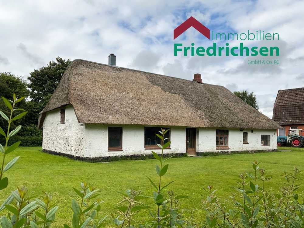 Historisches Bauernhaus mit Stallteil unter Reetdach