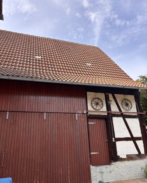In ruhiger aber zentraler Lage befindet sich das Grundstück bestehend aus Haus mit 2 Etagen und geräumigem Keller, Garage mit Dachterrasse, Hof, Scheune und dahinter liegendem Gartengrundstück.