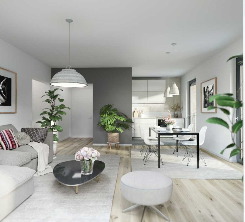 In den drei Gebäuden des Ensembles befinden sich auf jeweils drei Etagen großzügig geschnittene 2, 3 und 4Zimmer-Wohnungen. Alle Einheiten werden aus zwei Himmelsrichtungen mit Licht versehen und bieten dank bodentiefer Fenster sowie Terrasse, Loggia oder Balkon viel Helligkeit und teilweise einen wunderschönen Blick in den Rheingau. Bis zu 33 qm große Wohn-/ Ess-Bereiche mit offenen Küchen, Schlafzimmer mit zusätzlichem Bad en Suite in den größeren Wohnungen sowie viele Annehmlichkeiten vom Echtholzparkett mit Fußbodenheizung bis zu praktischen Abstellräumen schaffen ein komfortables und maßgeschneidertes Wohnerlebnis für Alleinlebende, Paare und Familien.