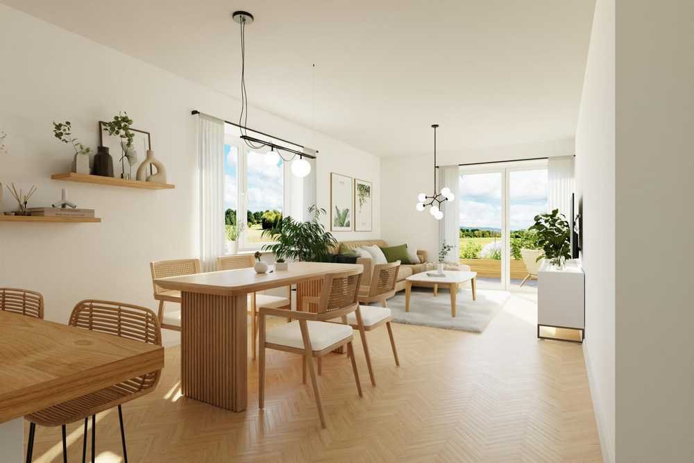 Die schlüsselfertige Übergabe erfolgt inklusive aller Hausanschlüsse und vollständig fertiggestellter Außenanlagen. Individuelle Wünsche – wie besondere Bodenbeläge oder die Ausstattung der Küchen – können im Rahmen des Sonderwunschmanagements berücksichtigt werden.