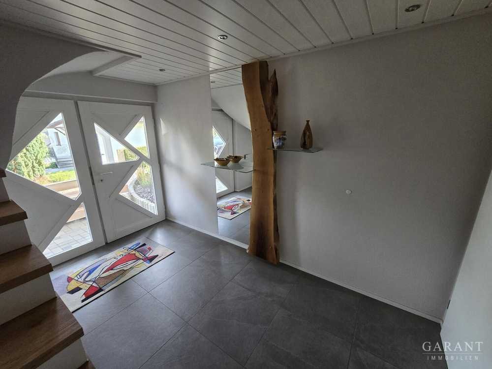 In schönem Ambiente empfangen Sie Ihre Gäste im Eingangsgeschoss und kommen über die Treppe direkt in die stilvolle Wohnetage. Hell und freundlich präsentiert sich der offene Wohnbereich mit herrlichem Blick übers Tal in die Natur und dem eigenen Garten. Die Küche mit separater Speisekammer ist gut geschnitten und trennt Sie nur durch einen Tresen vom Esszimmerbereich, so können Sie sich auch als kochender Gastgeber stets mit Ihren Freunden und Bekannten unterhalten. Zugang in den traumhaften Garten hat man über den Balkon über das Wohnzimmer oder direkt über die Terrasse vom Essbereich. Ein Büro sowie das Gäste-WC runden diese Etage ab.