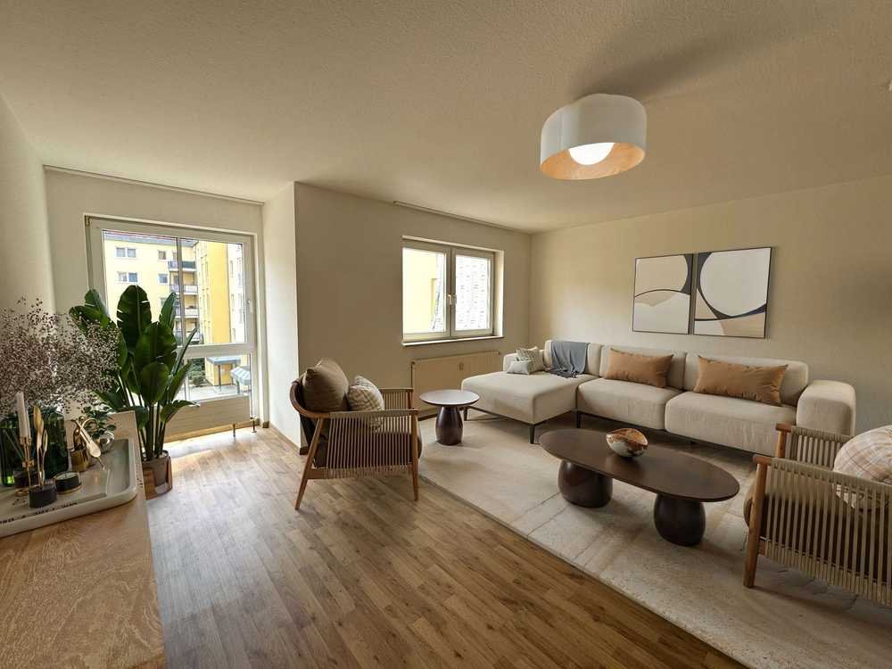Der helle Wohnbereich schafft eine angenehme Atmosphäre und bietet vielseitige Gestaltungsmöglichkeiten sowie ausreichend Platz für eine komfortable Möblierung.