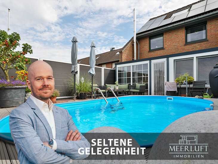 Mit rund 127 m² Wohnfläche, 3 Zimmern, einem pflegeleichten Garten und einer überdachten Terrasse bietet dieses Haus das ideale Gesamtpaket für Familien, Paare oder alle, die naturnah und dennoch gut angebunden leben möchten. Das Grundstück misst ca. 298 m² und liegt in einer verkehrsberuhigten Spielstraße. Das Erscheinungsbild ist sehr modern: weiße Kunststofffenster mit Doppelverglasung, Glasschiebetüren sowie eine 2017 erneuerte Gasheizung unterstreichen die Werthaltigkeit des Hauses. Besonders praktisch für den Alltag: Vor dem Haus können drei Fahrzeuge parken, zusätzlich lässt sich ausgebaute Dachboden mit großem Fenster dsehr gut als Rückzugsort nutzen. Der sonnige Garten bietet mit seiner am Kanal liegenden Rasenfläche, dem beideitigen Sichtschutz am Pool und auf der Terrasse viel Privatsphäre genießen – ideal für entspannte Nachmittage im Freien. Das Poolhaus ist mit einer praktischen Küche ausgestattet und ermöglicht so das Kochen mit Blick auf den Pool. Die ruhige Lage, kombiniert mit der gut durchdachten Raumaufteilung, macht dieses Objekt besonders attraktiv für Eigennutzer wie auch Kapitalanleger. Dank der guten Bausubstanz ist mit wenigen Handgriffen ein schneller Einzug möglich. Perfekt für den Sommer am Wasser.