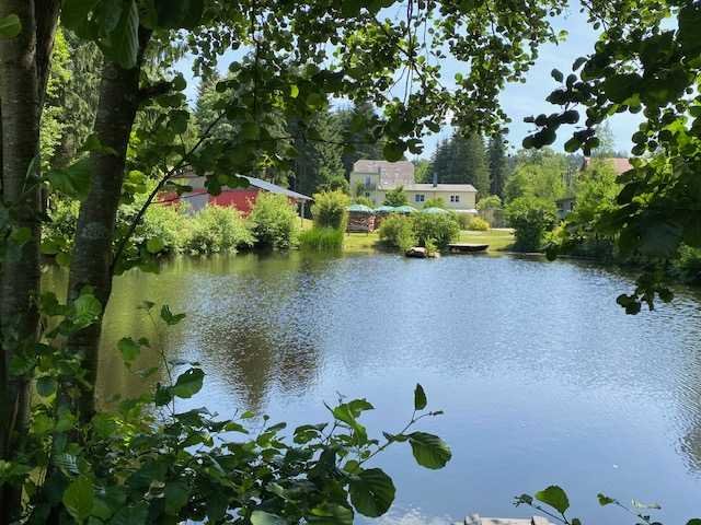 Freizeitbereich mit großem Badeteich, Gartenhütte, Feuerstelle und finnischem Badezuber.