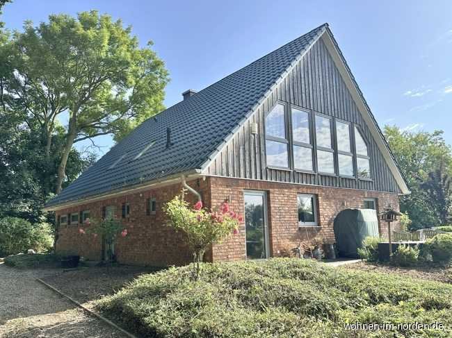 Dieses besondere Anwesen aus dem Jahr 2018 verbindet die Effizienz eines Neubaus der Energieklasse A mit dem Charakter eines Landhauses und verfügt über eine eigene Pferdekoppel. Auf rund 195 m² Wohn- und Nutzfläche präsentiert sich im Erdgeschoss ein großzügiger Eingangsbereich mit Holztreppe ins Obergeschoss, eine hochwertige Miele-Einbauküche mit eigenem Ausgang in den Garten und angrenzendem Hauswirtschaftsraum, ein geräumiges Bad, ein zusätzliches Zimmer sowie ein Wohn- und Essbereich, der durch einen Wintergarten erweitert wird. Von hier eröffnet sich ein weiter Blick über den Garten auf die eigene Pferdeweide, den Naturbadeteich und das angrenzende Saunahaus – ein Ausblick, der jeden Tag wie eine kleine Auszeit wirken lässt. Im Obergeschoss führt ein weiter, offener Flur zu drei behaglichen Zimmern und einem stilvollen Vollbad. Eines dieser Zimmer liegt an der gesamten Giebelseite, die großzügig verglast ist, und bietet einen traumhaften Blick auf die Pferdekoppel – ein Ort, an dem jeder Pferdenarr ins Schwärmen gerät. Sichtbare Holzbalken und edle Parkettböden unterstreichen die warme, ländliche Atmosphäre, die in diesem Haus sofort ein Gefühl von Geborgenheit vermittelt. Das Grundstück umfasst ca. 1,4 Hektar, davon rund 1,2 Hektar direkt am Haus gelegene, gepflegte Pferdeweide, ergänzt um eine Obstbaumwiese mit alten Apfelsorten, einen Garten, den Naturbadeteich und das separate Saunahaus. Zusätzlich gehören zwei etwas entfernt liegende eigene Moorgrundstücke mit zusammen etwa 2.000 m² dazu – ein weiteres Stück unverfälschte Natur. Eine große Garage mit zwei Nebenräumen und Wallbox, die ruhige Zufahrt über einen Privatweg sowie eine Photovoltaikanlage auf dem Dach runden das Angebot ab. Diese seltene Kombination aus hochwertigem Wohnkomfort, traumhafter Lage und einer eigenen Pferdekoppel macht das Anwesen zu einer Gelegenheit, wie sie nur selten zu finden ist.