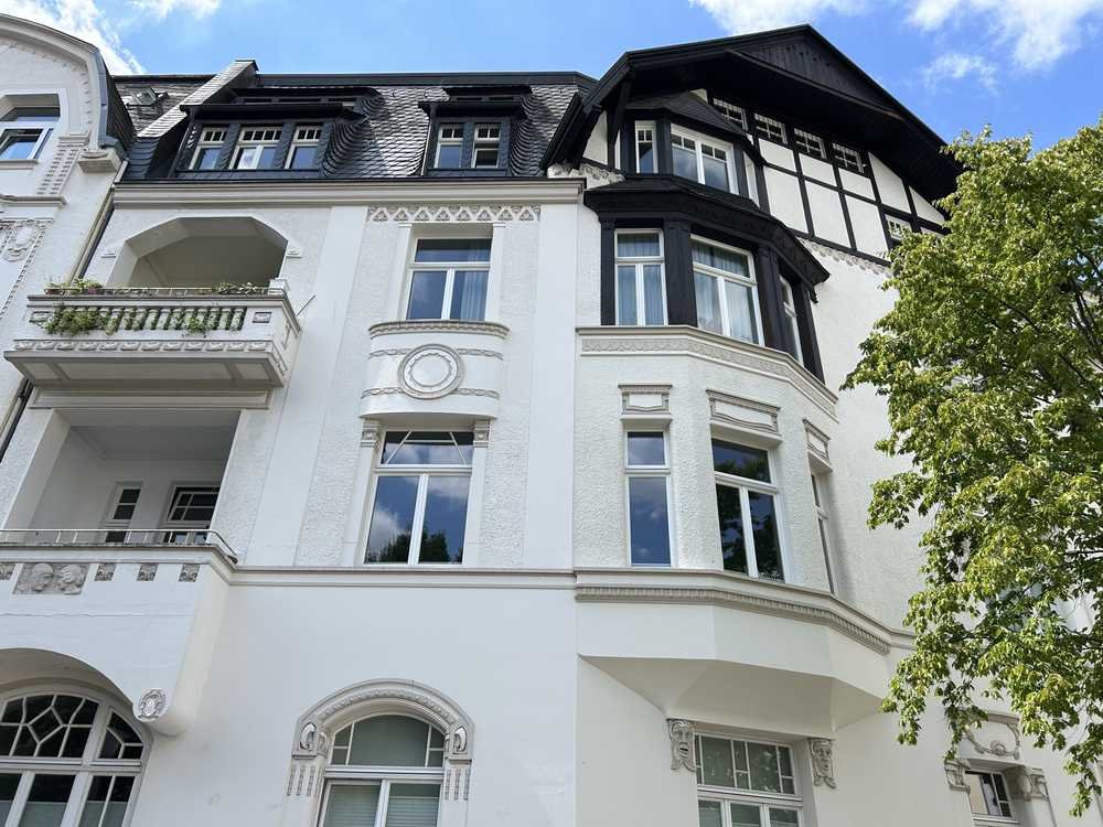 Seit 30 Jahren bewohnen wir diese traumhaft schöne Wohnung, wir lieben sie wie am ersten Tag. Sie kann die Heimat Ihres Lebens werden - Ein Altbau aus der Jugendstilzeit (Baujahr 1907): hohe Decken (3,50 m), originale Bodendielen und Türen einschließlich großer Schiebetür im Wohnbereich, originaler Stuck im Wohnzimmer, große Fenster nach Osten und Westen, Bad mit zwei großen Fenstern, Loggia-Balkon; dazu ein um einen Wintergarten erweitertes, sehr großzügiges Lebens- und Esszimmer mit großem Durchgang zur voll ausgestatteten Küche.