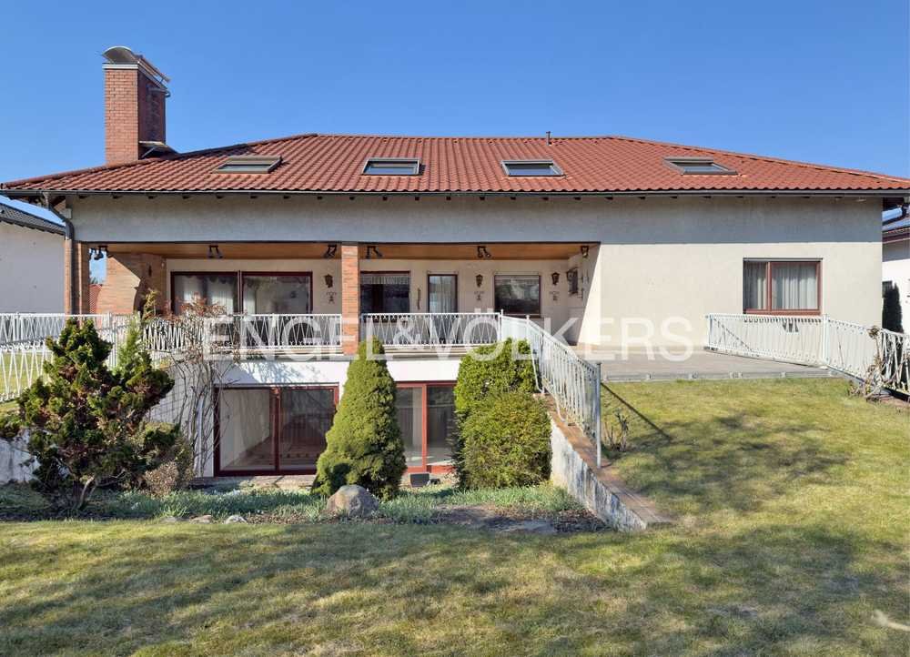 Über die helle Diele im Obergeschoss gelangen Sie direkt in den großzügigen Essbereich mit Zugang zur Terrasse und zum Garten. Die Küche ist zurzeit durch ein großes Schrankelement von hier abgetrennt, lässt sich aber auch mit geringem Aufwand in ein großes und offenes Kochen und Essen verwandeln. Nach links gelangen Sie in 4 gut geschnittene Zimmer und in ein Tageslichtbad mit Dusche und Badewanne. Besonderheit dieser Ebene ist sowohl das knapp 60m² große und lichtdurchflutete Wohnzimmer auf der Westseite des Hauses als auch die knapp 40m² große Terrasse mit integriertem Außengrill und der schön gelegene Garten. Ein idealer Ort, um schöne Stunden im Freien zu verbringen, mit Freunden zu grillen oder einfach nur die Seele baumeln zu lassen. Der Außenbereich ist somit auch das perfekte Terrain für Kinder und Vierbeiner.