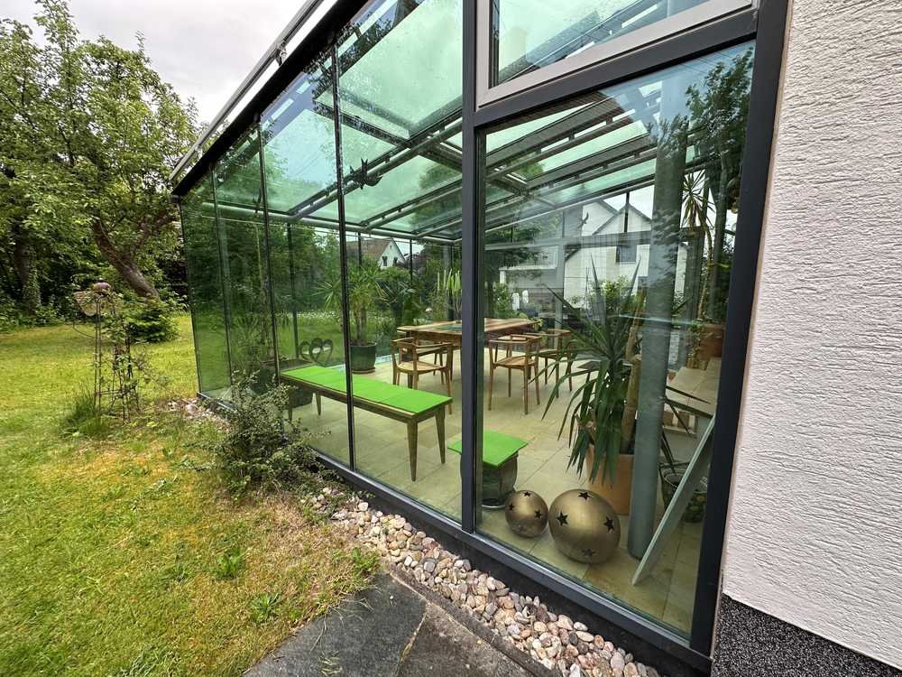 Das ansprechende und sehr gepflegte, einstöckige Einfamilienhaus zeichnet sich durch eine gehobene Innenausstattung mit viel Platz für eine große Familie aus. Sehr geschmackvoll ist der beheizte Wintergarten der mit einer elektrischen Markise ausgestattet ist und eine wunderbare Wohnatmosphäre schafft. Das gut geschnittene Wohnzimmer schließt sich an den Wintergarten an und hat einen gemütlichen Kachelofen, der vom Keller aus beheizt wird. Zusätzlich zu den acht schönen Zimmern gibt es in dem Haus auch eine sehr große Wohnküche und 2 moderne Bäder.