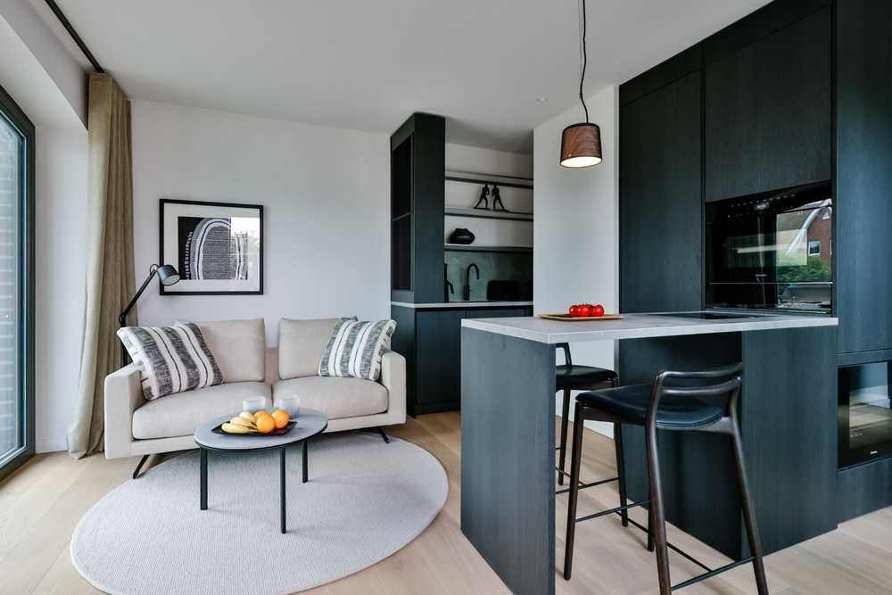 Das Interior Design besticht durch harmonische Farb- und Materialkonzepte, während stimmungsvolle Kamine eine behagliche Atmosphäre schaffen. Die Küchenmöbel von SieMatic in sterlinggrau und grifflosen Designs sind mit feinen Steinarbeitsplatten versehen und mit hochwertigen Markengeräten wie Miele, BORA und Quooker ausgestattet. Die eleganten Badezimmer verfügen über einen hohen Wellnessfaktor und bieten besondere Behaglichkeit durch Duschbereiche mit Infrarotsaunen.