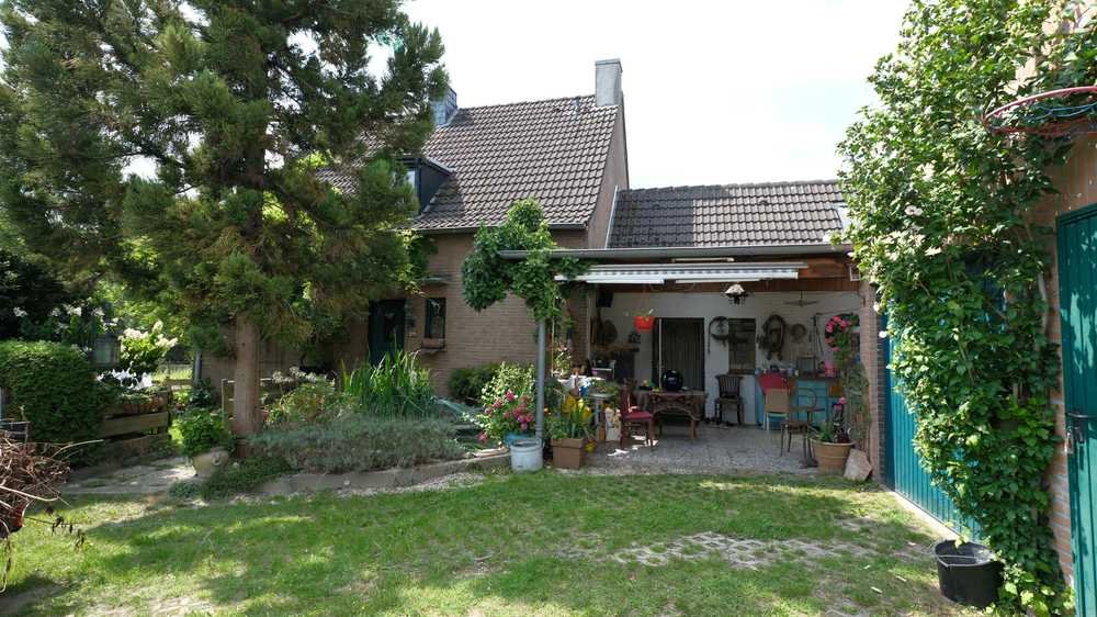 Garten: Teilwiese gepflastert. Stellplätze vor der Doppelgarage und einen Stellplatz seitlich vom Haus für ein Wohnmobil.
