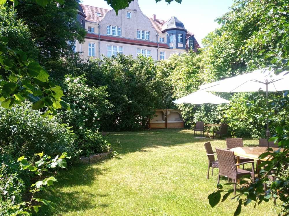 Erholen können Sie sich sowohl im kleinen, aber eigenen Garten mit Blick auf alten Baumbestand in den angrenzenden Gärten oder der überdachten Loggia im EG oder dem Balkon im ersten Stock.
